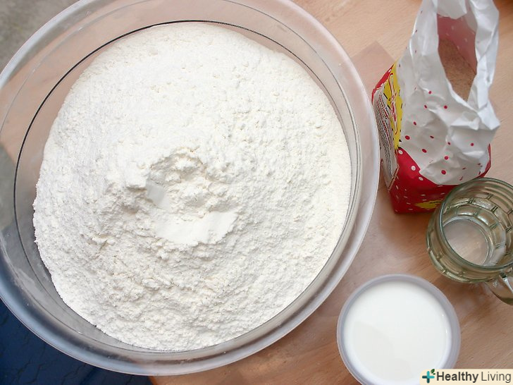 - Додайте борошно. Переконайтеся, що борошно повністю покриває рідину.