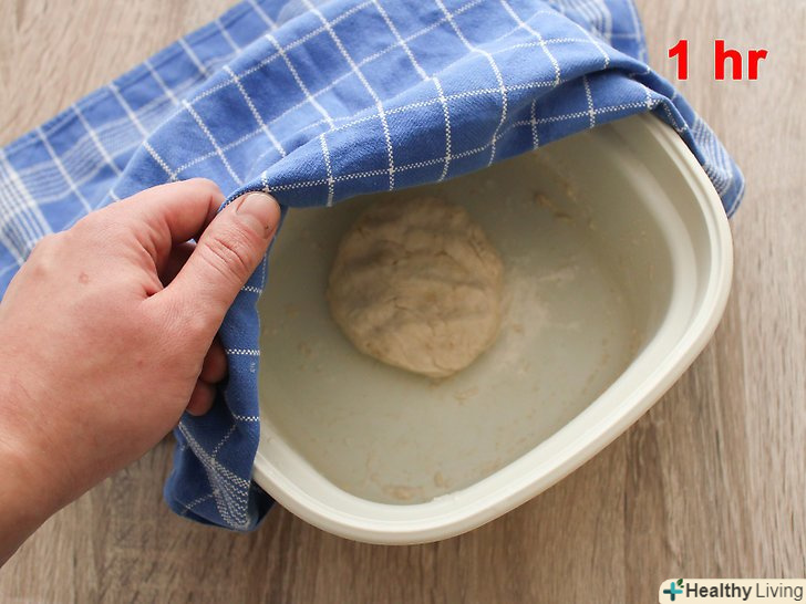 Змастіть миску маслом, покладіть тісто, і накрийте вологою ганчіркою.поставте в тепле місце і дайте піднятися протягом приблизно однієї години. Тісто має стати в два рази більше.