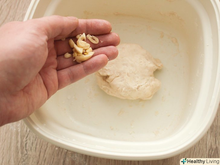 Замішайте тісто, додайте часник (за бажанням) і злегка вимісіть.