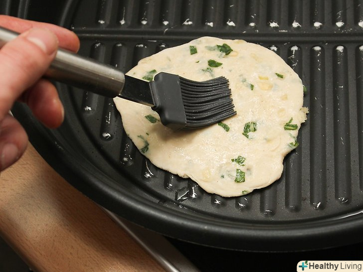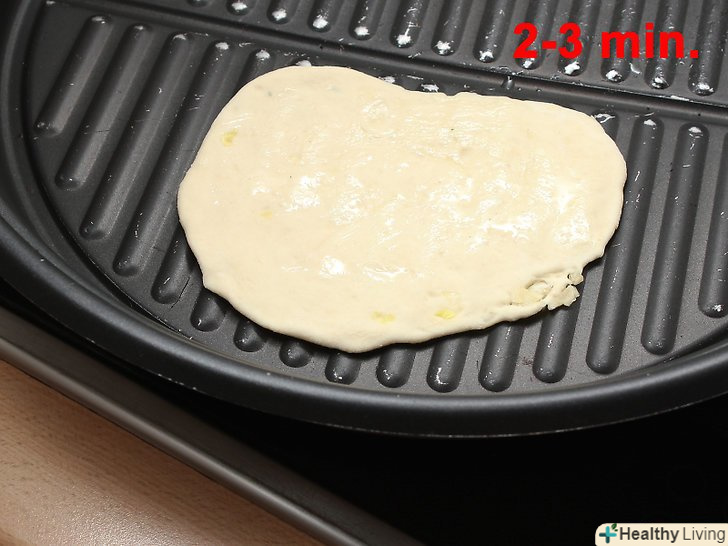Викладіть тісто на гриль і прожарюйте 2-3 хвилини або поки коржі не підрум'яняться.