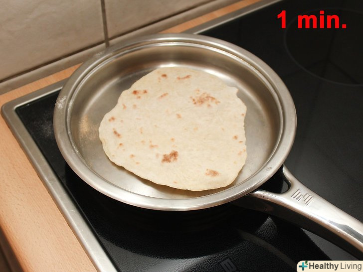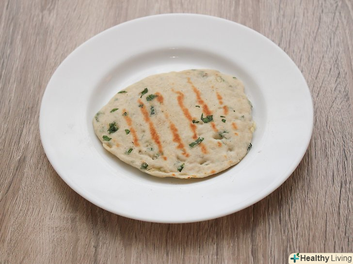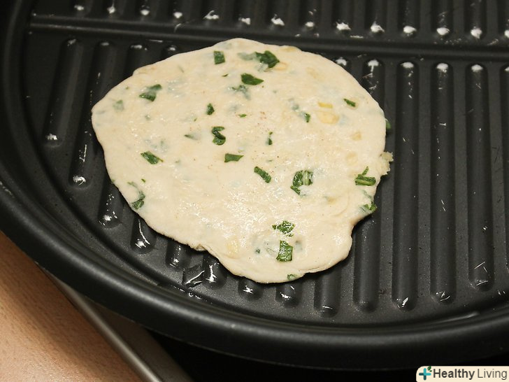Розігрійте сковорідку (не додаючи масло) і спечіть тісто на середньому вогні.воно повинно запікатися до тих пір, поки на хлібі не з'являться бульбашки (приблизно 1 хвилину), а потім переверніть і обсмажте другу сторону.