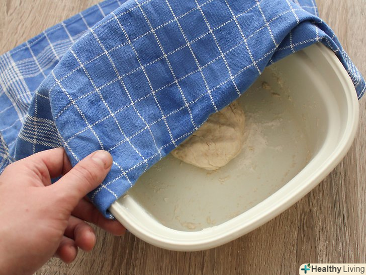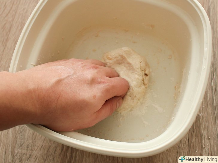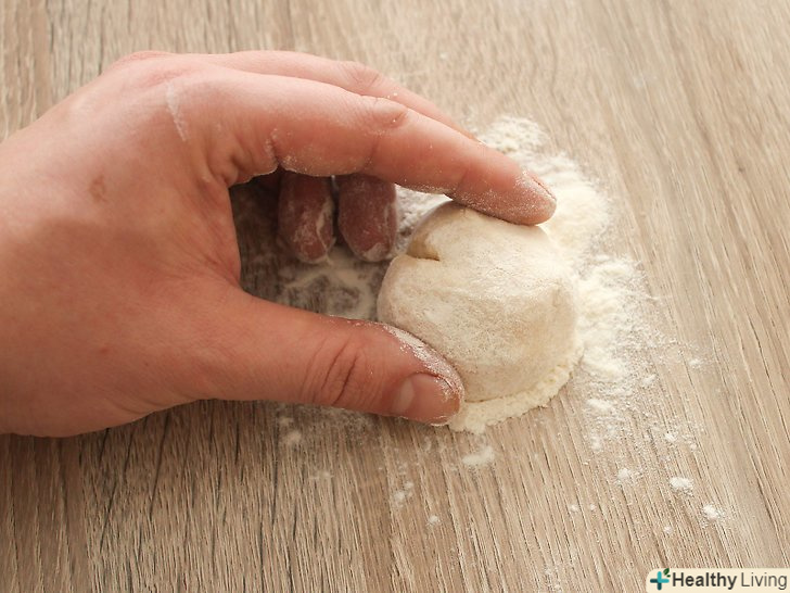Вимісіть тісто вручну на плоскій поверхні (наприклад, на обробній дошці або робочої поверхні) до тих пір, поки воно не стане гладким і еластичним.посипайте руки і поверхню борошном, щоб тісто не липло.