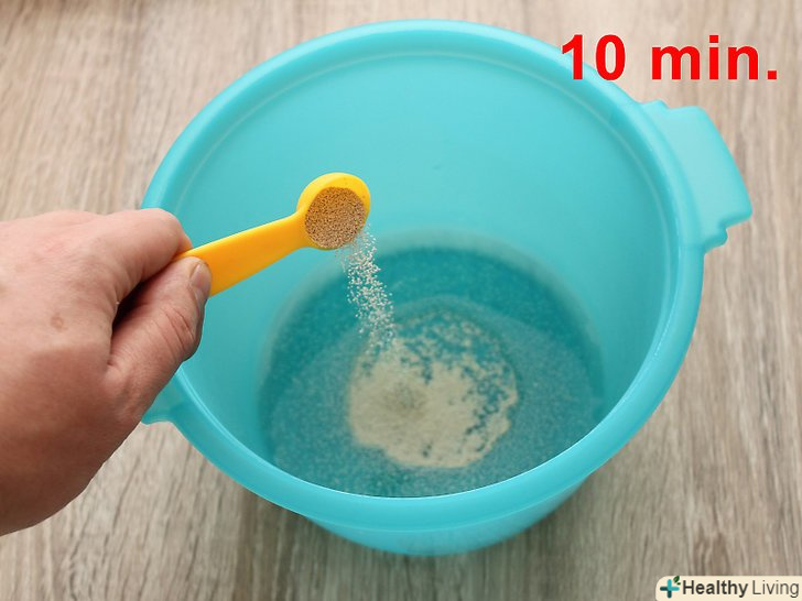 Додайте теплу воду і дріжджі у велику миску. Дайте настояться10 хвилин.