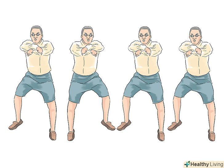 Займіть відповідну позицію.розставте ноги і злегка зігніть коліна. Ваші ноги повинні бути трохи ширше плечей, а Ваша спина повинна бути прямою.- Тримайтеся вільно і розслаблено. Ви недовго залишитеся стояти нерухомо.