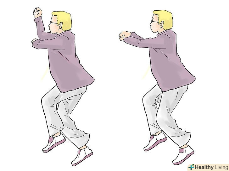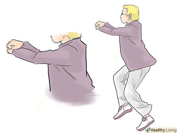 - Підніміть руки наверх і опустіть вниз пружними рухами, потрапляючи в біт музики. Цей рух повторюється вісім разів.