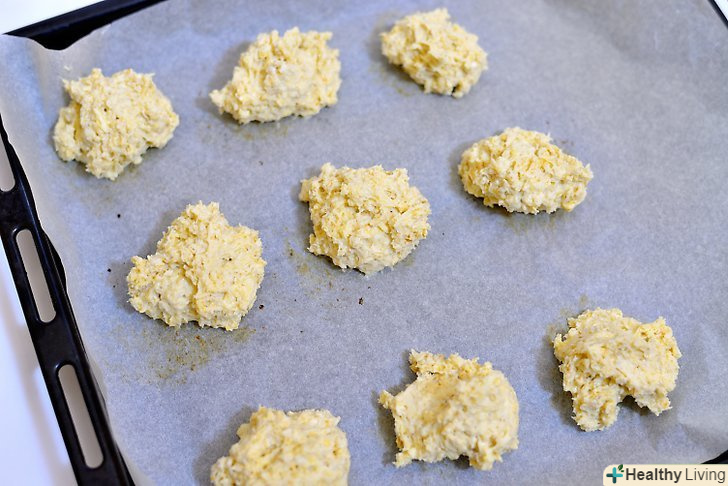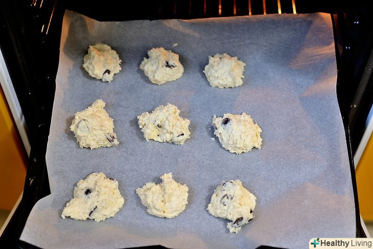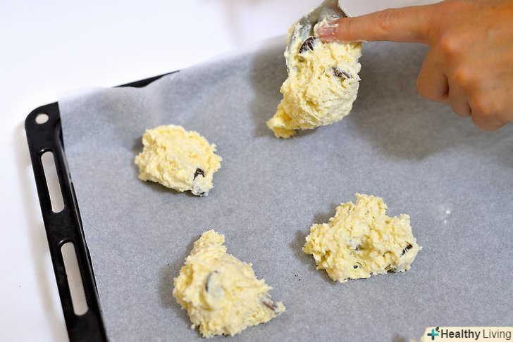 Заморозьте тісто.постеліть на дно дека пергаментний папір і викладіть на неї заготовки з тіста. Помістіть деко з заготовками на одну годину в холодильник. Оскільки в духовці печиво розпухне, постарайтеся, щоб заготовками було хоча б 10 сантиметрів вільного місця.[16]- Якщо ви хочете отримати більш однорідне за розміром печиво, відміряйте тісто лопаткою для морозива.