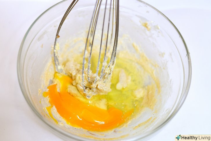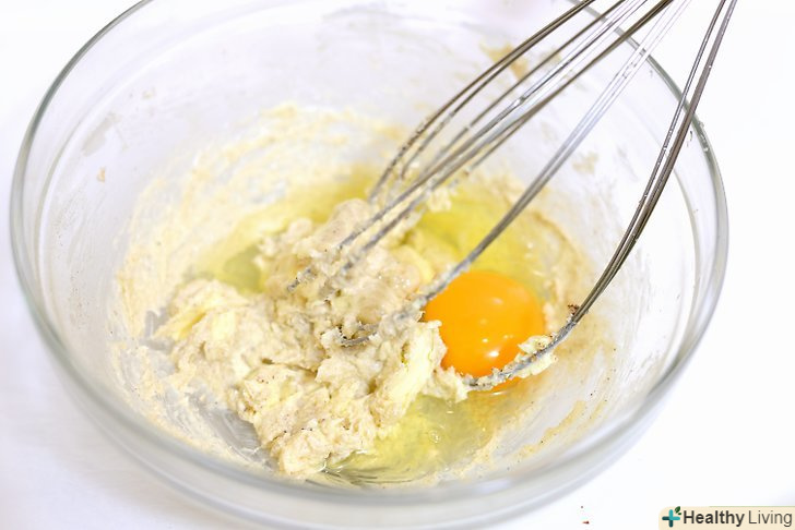 Змішайте масло і цукор.візьміть велику миску і змішайте в ній вершкове масло і цукор, так щоб вийшла однорідна збита маса. Після того, як ви зіб'єте масло з цукром, по одному додайте в нього яйця, а потім ванільний екстракт. За допомогою стаціонарного або ручного міксера ви впораєтеся з цим за кілька хвилин.[28]- Масло має розм'якшити, але не розтанути.