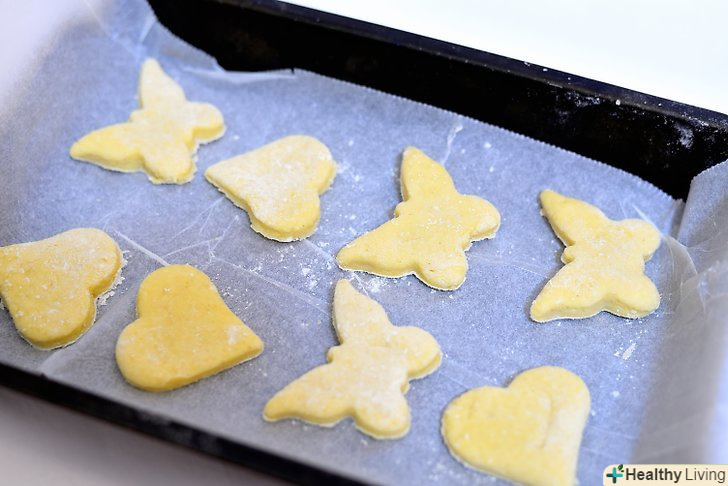 Викладіть заготовки на деко.змастіть деко маслом або постеліть на нього пергаментний папір. Після цього викладіть на деко заготовки так, щоб між ними залишалося близько 5 сантиметрів вільного місця.[32]- Якщо покласти печиво занадто близько один до одного, то воно спечеться разом, і його краї не будуть хрусткими.
