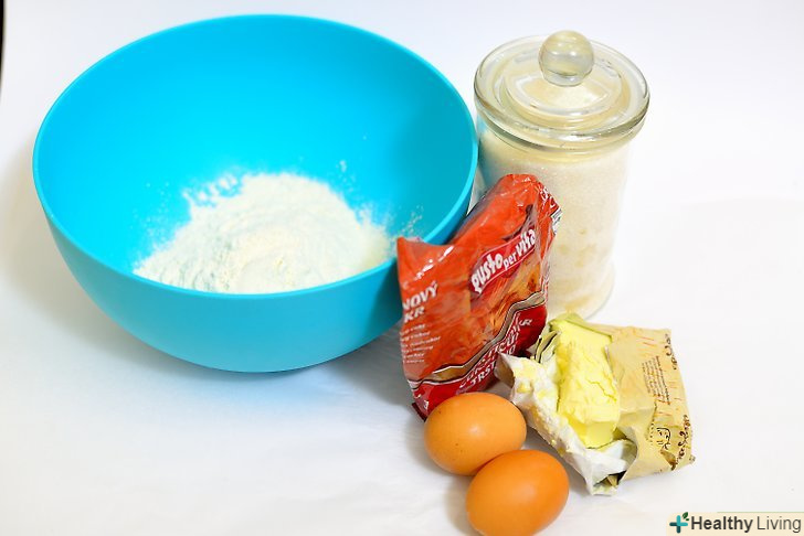 Зберіть все необхідне. вам знадобляться наступні інгредієнти: 1 склянка (240 грамів) вершкового масла, 2 склянки (400 грамів) цукрового піску, 2 яйця, 1 чайна ложка (8 грамів) ванільного екстракту, 5 склянок (800 грамів) пшеничного борошна першого сорту, 1 ½ чайної ложки (4 грами) пекарського порошку, 1 чайна ложка (12 грамів) харчової соди, ½ чайної ложки (5 грамів) солі, ¼ Склянки (60 грамів) 2%-го молока.[26]- Даний рецепт розрахований на 80-100 штук печива.