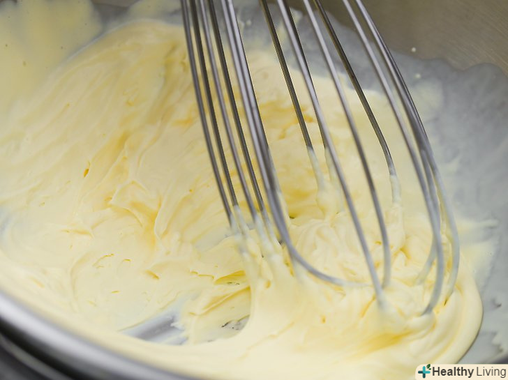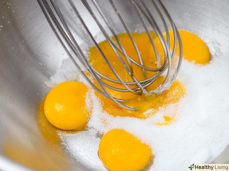 Збийте в мисці 1/4 склянки (48 г) цукру-піску і 5 яєчних жовтків.