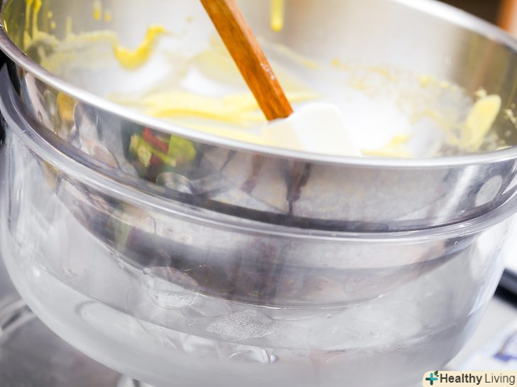 Поставте миску на крижану баню і помішуйте вміст, поки воно охолоджується.робіть це, поки суміш не досягне кімнатної температури.
