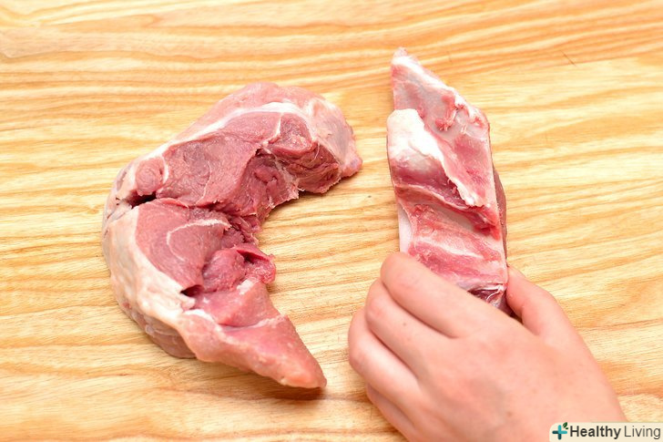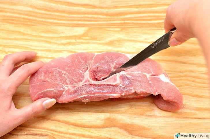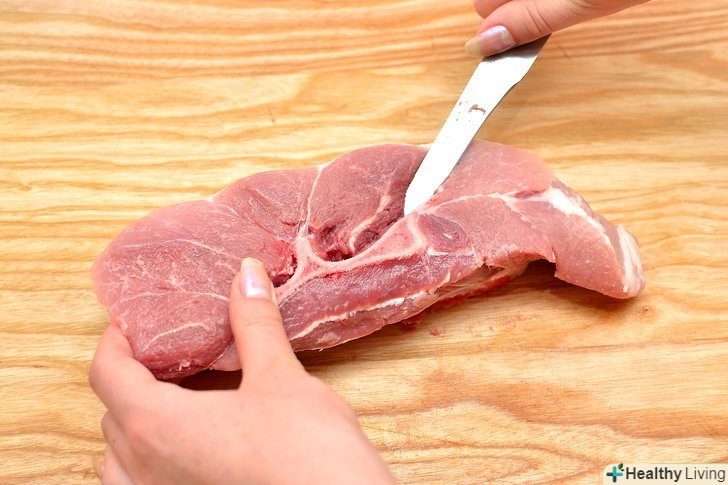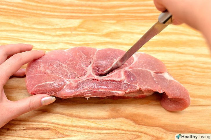 Проведіть ножем між кісткою і м'язовою тканиною або жиром в м'ясі.