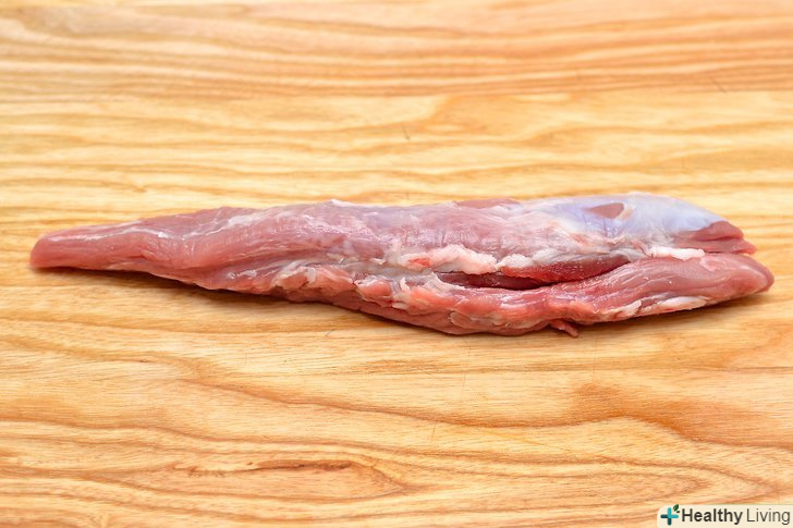 Помістіть шматок м'яса на обробній дошці шкурою догори.