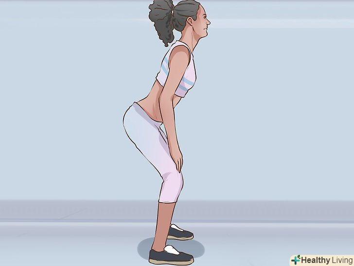 Прийміть стартову позицію. Випряміть верхню частину тулуба. Чи не прогинайте спину і не сутультесь. Втягніть попу, так щоб вона утворювала майже пряму лінію зі спиною. Злегка зігніть коліна і ніколи, ні в якому разі не змикайте їх. Ваші стопи повинні стояти паралельно, приблизно на відстані 30 см один від одного. Ваш підборіддя повинен бути піднятий, а ваші плечі злегка відведені назад. Прийміть стартову позицію. Випряміть верхню частину тулуба. Чи не прогинайте спину і не сутультесь. Втягніть попу, так щоб вона утворювала майже пряму лінію зі спиною. Злегка зігніть коліна і ніколи, ні в якому разі не змикайте їх. Ваші стопи повинні стояти паралельно, приблизно на відстані 30 см один від одного. Ваш підборіддя повинен бути піднятий, а ваші плечі злегка відведені назад.