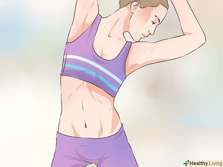 Розтягніться.розігрів перед тренуванням вбереже вас від розтягнутих м'язів та інших травм. Просто нахиліться вперед, так щоб доторкнутися до пальців ніг, покрутіть шиєю і плечима, і потягніть зап'ястя щоб відчути себе добре і вільно. Якщо можете, зробіть місток, щоб потягнути м'язи живота. Розтягніться.розігрів перед тренуванням вбереже вас від розтягнутих м'язів та інших травм. Просто нахиліться вперед, так щоб доторкнутися до пальців ніг, покрутіть шиєю і плечима, і потягніть зап'ястя щоб відчути себе добре і вільно. Якщо можете, зробіть місток, щоб потягнути м'язи живота.- Коли збираєтеся танцювати танець живота, зберіть волосся і надіньте таку майку, щоб ваш живіт було видно.