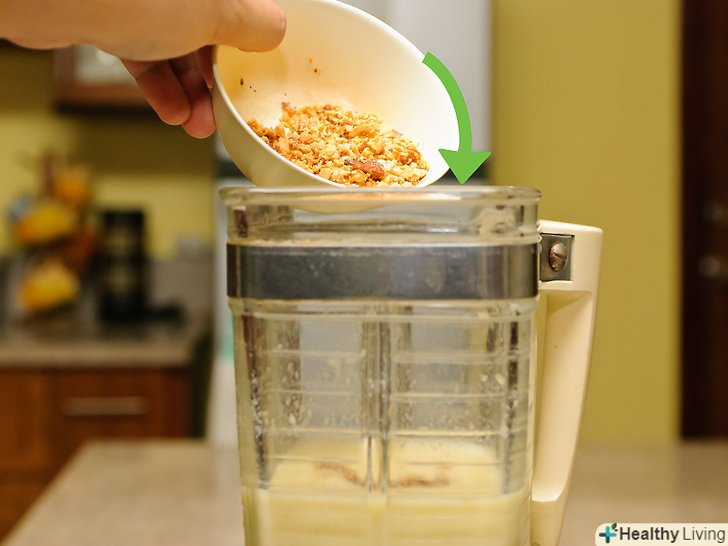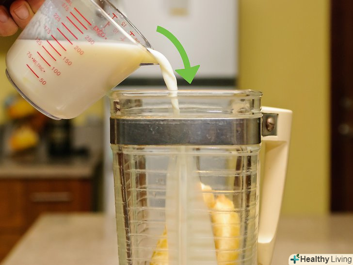 Помістіть всі інгредієнти в блендер або кухонний комбайн.чим більше молока ви додасте, тим більш вершковим вийде морозиво. Можна використовувати мигдальне або кокосове молоко, а також будь-яке інше рослинне молоко.- Якщо ви хочете приготувати м'ятне морозиво з шоколадною крихтою, використовуйте тільки 2 банана. Для інших смаків використовуйте 3 банана.