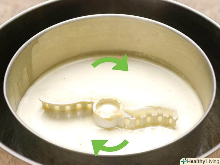 Заморозьте основу морозива в морожениці.дотримуйтесь інструкцій виробника вашого приладу, оскільки для різних морожениц процес може відрізнятися. Зазвичай для заморожування морозива потрібно близько 20 хвилин.- Якщо у вас немає морожениці, влийте суміш в металеву форму для приготування хліба і перемішайте. Приберіть в морозильну камеру і закрийте листом вощеного паперу. Перемішуйте масу віночком кожні 30-60 хвилин. Для заморожування морозива зазвичай потрібно близько 6 годин.[7]