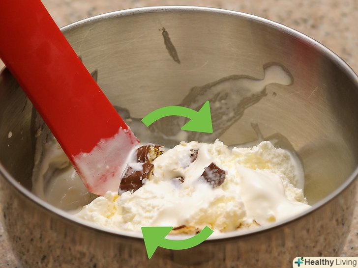 Якщо хочете, то вмішайте будь-які добавки за допомогою лопатки.на даному етапі ваше морозиво вже готове і його можна заморозити. Однак, якщо хочете, то можете додати ¼ – ½ склянки (50-100 г) добавок, наприклад, подрібнені горіхи або шматочки шоколаду — додавайте все те, що доведеться вам до душі!- Якщо ви готуєте м'ятне морозиво з шоколадними чіпсами, тоді вам необхідно додати ¼ склянки (45 г) шоколадних чіпсів (з темного або веганського шоколаду).[8]