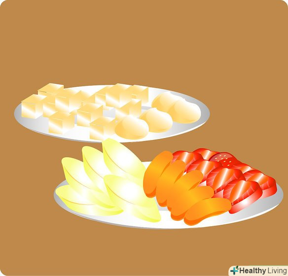Підготуйте супровід шоколадному фонтану.ідеї включають торт, в якому порівну інгредієнтів, безе, курагу, шматочки бананів і полуницю. Висушіть вимиті плоди так, щоб шоколад прилипав до них. Розріжте продукти для шоколадного фонтану на невеликі шматочки, щоб вони могли бути нанизані індивідуально.