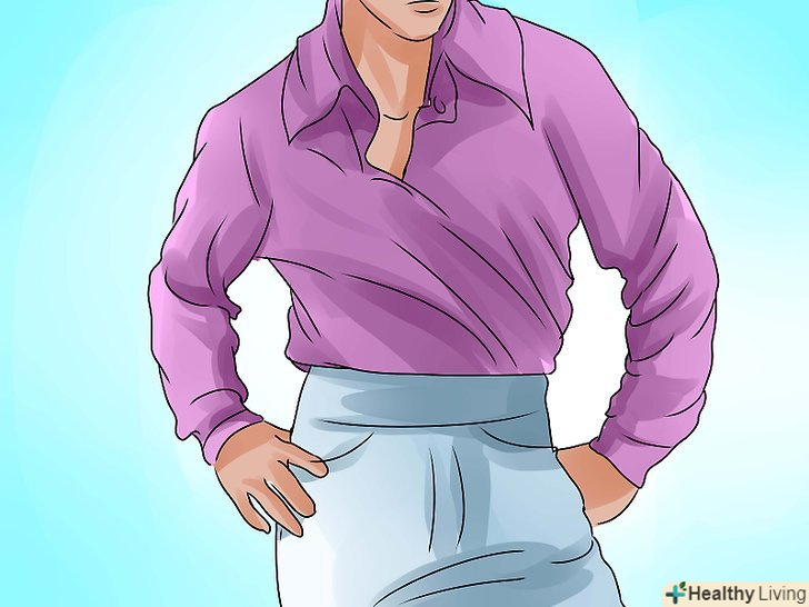 Носіть сорочки на ґудзиках, з відкритим вирізом і довгими рукавами.виберіть одну сорочку яскравого кольору, а іншу-зроблену з блискучого матеріалу. Залиште кілька верхніх гудзиків розстебнутими, щоб трохи оголити груди. Ви можете також підняти комір, але це за бажанням.
