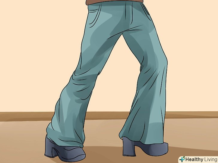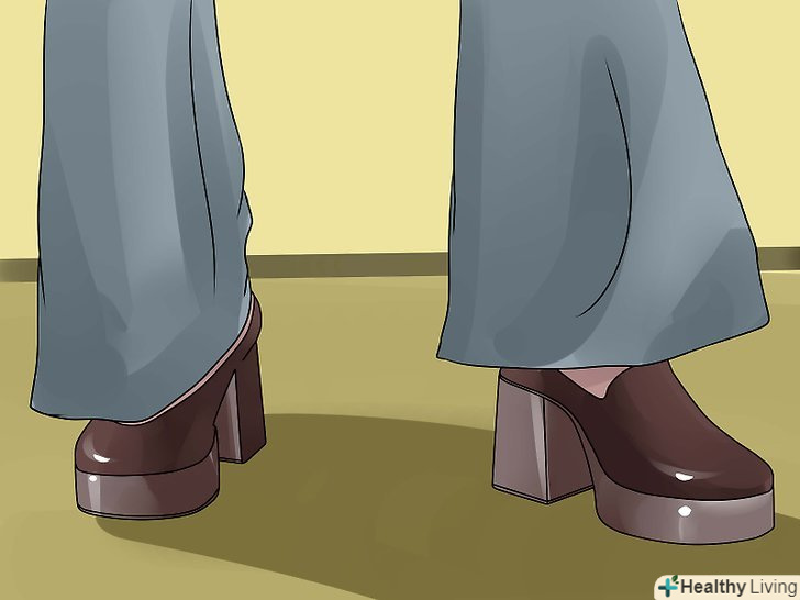 Підберіть пару взуття на платформі. Постарайтеся, щоб вона була відносно низькою. Хоча чоловіки 70-х років і носили досить високу платформу, сучасним хлопцям важко буде звикнути до такої висоти. Виберіть взуття на низькій підошві, щоб уникнути нещасного випадку і болю в ногах.