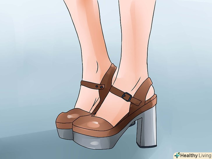 Одягніть взуття на платформі. Платформа повинна бути високою. Однак занадто висока платформа може виявитися небезпечною для жінок, які не звикли носити таке взуття. Підійдуть яскраві або сріблясті кольори. Також вибирайте моделі з закритим носком, так як саме таке взуття носили в той час.