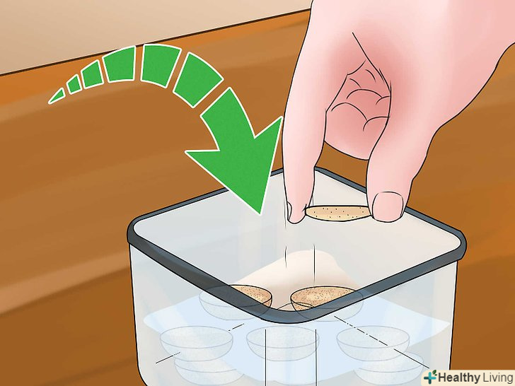 Помістіть готове печиво в герметичний контейнер.використовуйте пластиковий або скляний контейнер і переконайтеся, що кришка щільно зафіксована. Викладайте печиво в ряд одним шаром за раз. Помістіть шматочки паперу для запікання між усіма наступними шарами.[9]