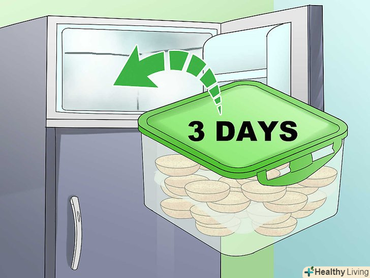 Вживайте охолоджене печиво протягом 3 днів.помістіть контейнер в середину холодильника, де температура не змінюється. Не зберігайте печиво в передній частині холодильника або в двері, так як в цих місцях температура коливається. Переконайтеся, що поруч немає важких предметів, які могли б натиснути на контейнер.[4]