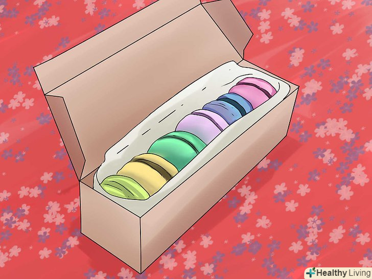 Зберігайте печиво "макаронів" в контейнері з герметичною кришкою.найкраще підійде пластиковий або скляний контейнер. Переконайтеся, що він чистий і сухий. Двічі перевірте щільність кришки, так як навіть невелика кількість повітря може привести до того, що печиво відволожиться.[1]- Можна використовувати і поліетиленові мішечки на блискавці, але так як печиво «макаронів» легко кришиться, краще взяти ємність з твердим корпусом.