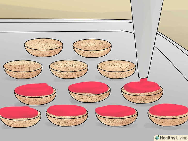 Дістаньте половинки " макаронів "з духовки і охолодіть.Дайте їм охолонути перш, ніж додавати начинку. Якщо ви цього не зробите, вони можуть потріскатися і втратити хрусткі властивості. Будьте обережні з половинками, так як вони досить крихкі після запікання.[7]- Ці половинки будуть зовнішньою частиною печива, тому необхідно, щоб вони виглядали якомога більш ідеально.