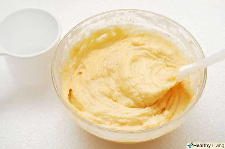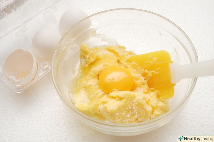 Додайте яйця. Продовжуйте збивати і додайте яйця. Збивайте до тих пір, поки яйця повністю не перемішаються. Суміш обов'язково повинна бути однорідною.