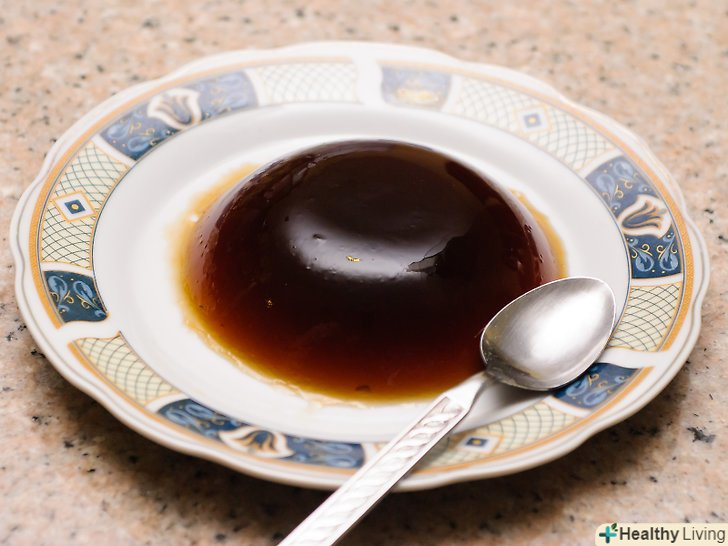 Вийміть затверділе желе з формочок.дістаньте з холодильника. Акуратно відсуньте желе від країв посудини, переверніть кожну форму і перекладіть його на десертну тарілку.- Якщо кавовий десерт пристав до форми, швидким рухом занурте її дно в гарячу воду. Це дозволить легко вийняти желе.