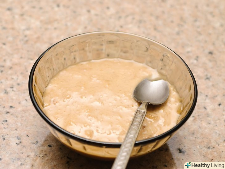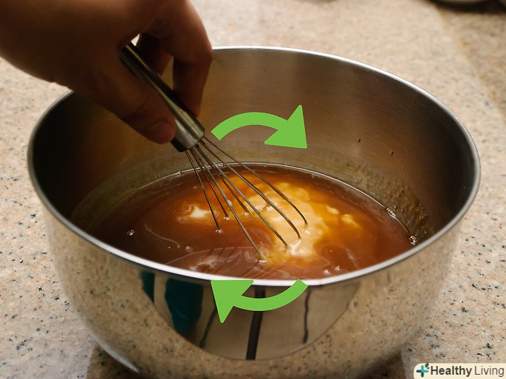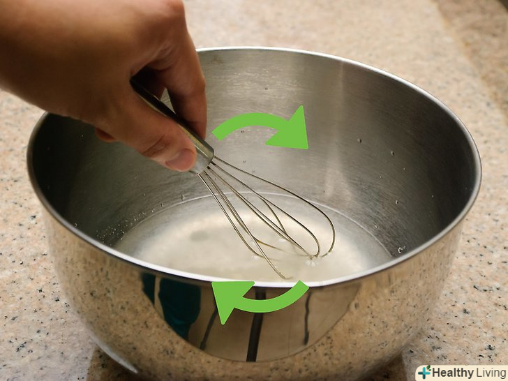 Змішайте желатин з водою.Налийте рідину в миску середнього розміру. Всипте желатин без добавок і дайте йому набрякнути протягом 10 хвилин.[5]- Желатин розбухає в міру вбирання кристалами води. Цей процес, відомий як гідратація, можна прискорити, якщо додати гарячу рідину.