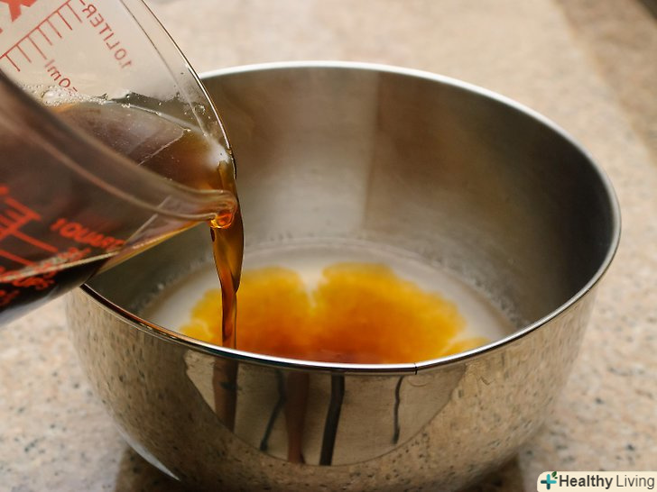 Додайте згущене молоко.Налийте солодке згущене молоко в розчинився желатин. Ретельно перемішайте, щоб вийшла однорідна маса.- Згущене молоко має бути солодким.Не використовуйте концентроване молоко без цукру, оскільки йому не вистачає смаку і густоти.