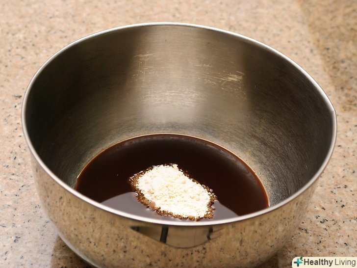 Змішайте желатин з кавовим лікером.налийте напій в миску маленького або середнього обсягу і додайте порошок. Дайте йому настоятися протягом 5 хвилин.[7]- Желатин набухне і стане м'яким. Його кристали вберуть вологу і легко розчиняться в гарячій каві.