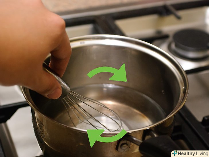 Нагрійте воду і агар-агар.перекладіть інгредієнти в невелику каструлю. Збийте до стану однорідної маси і поставте на плиту на сильний вогонь.[3]- Закип'ятіть і переходите до наступного етапу.
