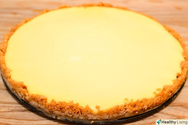 Накрийте чізкейк фольгою і поставте в холодильник.залиште його в холодильнику, як мінімум, на чотири години. Холодна температура допоможе чізкейку ущільнитися.- Деякі кухарі вважають, що чізкейк слід охолоджувати протягом 2-3 годин, не накриваючи його. Також охолодження допомагає прибрати вологу, яка могла б сформуватися зверху чізкейку.