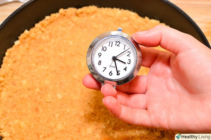 Поставте форму в духовку.коржу потрібно буде трохи затвердіти-поставте його в духовку на 10 хвилин, щоб досягти бажаної текстури. Після того, як пройде 10 хвилин, вийміть форму з духовки і зменшіть температуру до 160 ºС. Охолодіть корж протягом декількох хвилин.