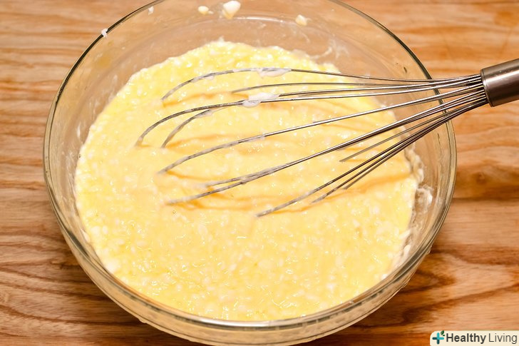 Розбийте в миску всі яйця.коли додасте 1 яйце, включіть міксер і збивайте протягом 1 хвилини. Використовуйте лопатку, щоб зішкребти суміш зі сторін і дна миски. Це важливо зробити, тому що великі шматки вершкового сиру можуть застрягти в цих областях. Потім додайте сметану і ретельно перемішайте. Те ж саме слід зробити і з жирними вершками, які треба додати, щоб перемішати всі інгредієнти разом.