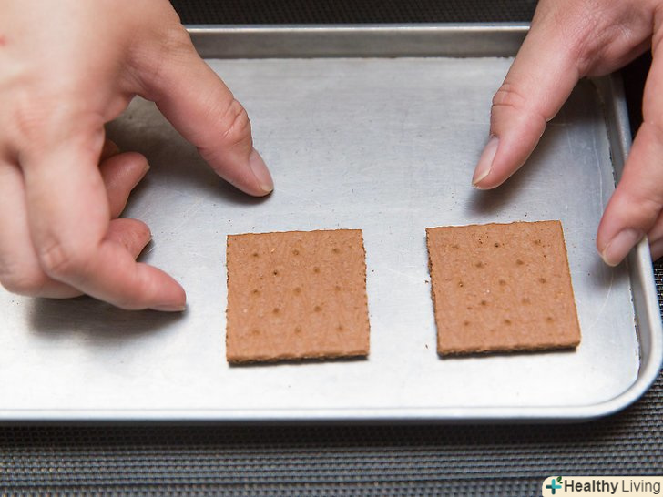 Покладіть половинки крекеру на деко.у духовці ви будете розігрівати всі інгредієнти для смора.