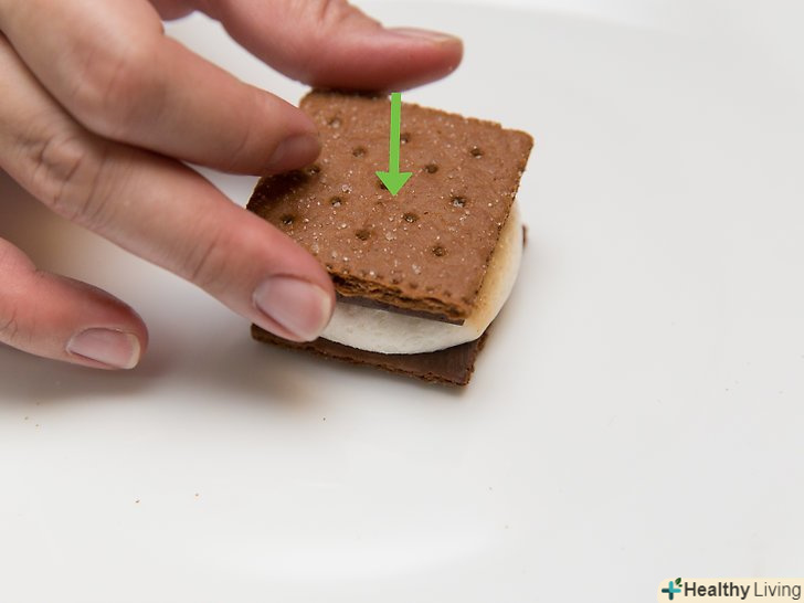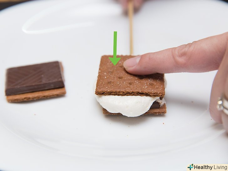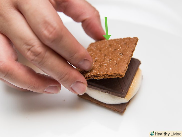 Покладіть другу половину крекеру на зефір і шоколад.злегка притисніть крекер. Гарячий зефір злегка розтопить шоколад, і вони з'єднаються один з одним.