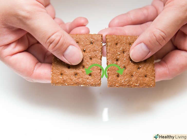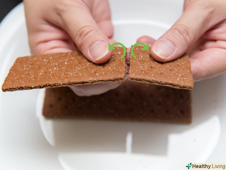 Зламайте крекер навпіл.у вас повинно вийти дві квадратні половинки. Одна половинка буде верхньою частиною смора, друга половинка буде нижньою частиною.
