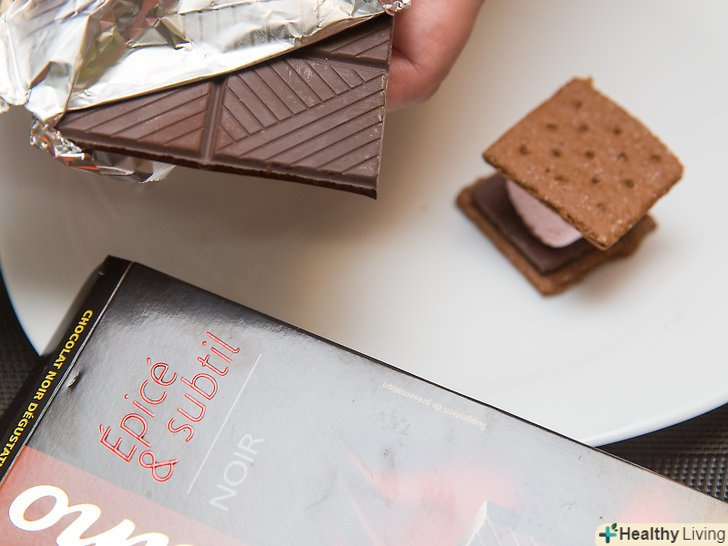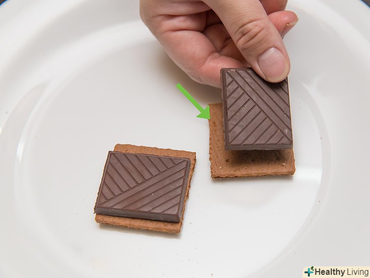 Покладіть шоколад на крекер.візьміть шматок шоколаду і покладіть його на одну половину крекеру. На іншій половині крекера не повинно бути нічого.
