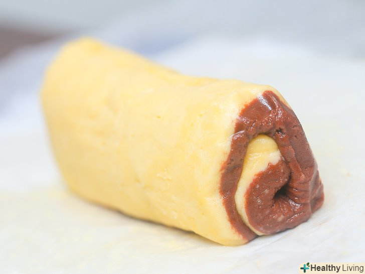 Скачайте тісто з меншої сторони, так, щоб воно набуло форму товстої «ковбаски».виконуйте цей процес чистими руками.
