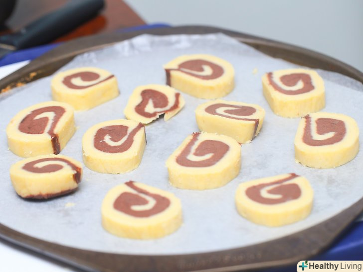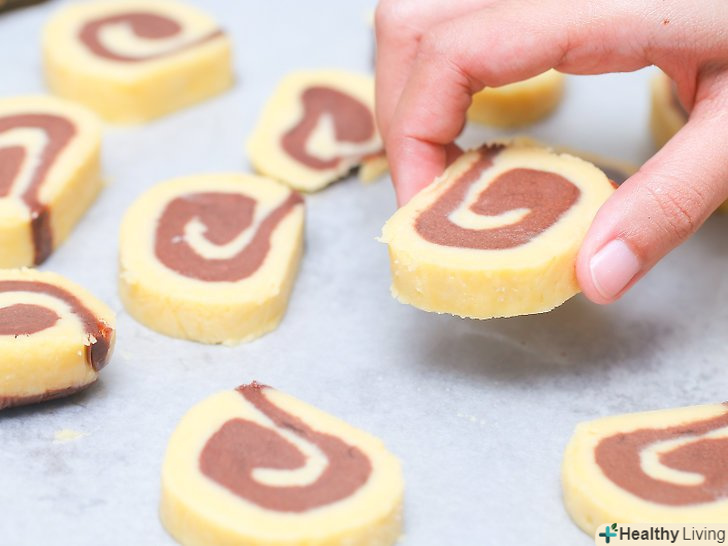 Покладіть печиво на решітку для охолодження.коли деко охолоне, застеліть його свіжим пергаментним папером, якщо ви плануєте пекти ще одну партію печива.- Повторіть процес для другої партії печива.поріжте " ковбаску "на частини, покладіть печиво на деко, поставте в холодильник, а потім спечіть.