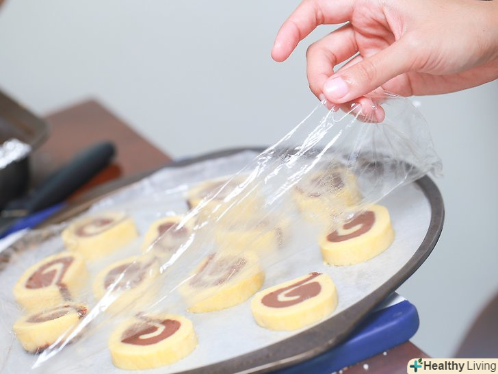 - Якщо ви заморожуєте "ковбаски", оберніть тісто поліетиленовою плівкою, а потім покладіть його в поліетиленовий пакет із застібкою. Тепер ви можете класти тісто в морозильну камеру. Коли ви захочете спекти печиво, дістаньте тісто з морозильника і перекладіть його в холодильник, залишивши на ніч розморожуватися. Коли тісто розморозиться, поріжте на частини і випікайте.