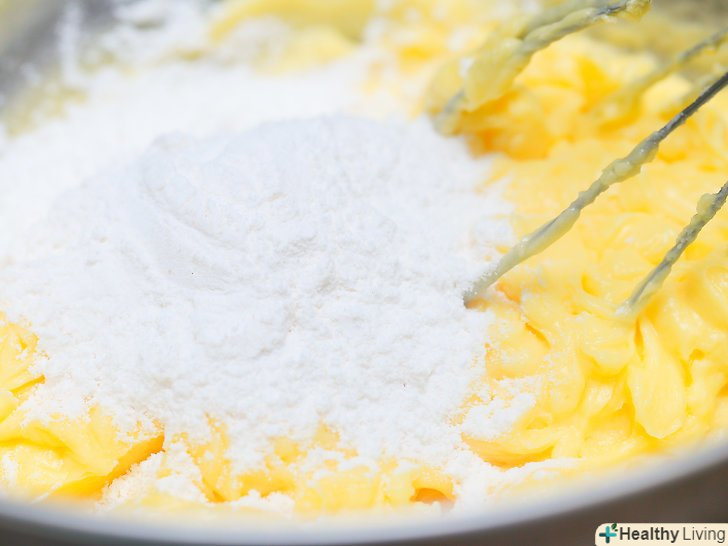 Збийте інгредієнти, використовуючи віночок або міксер на середній швидкості.суміш повинна бути блідо-жовтого кольору однорідної консистенції.