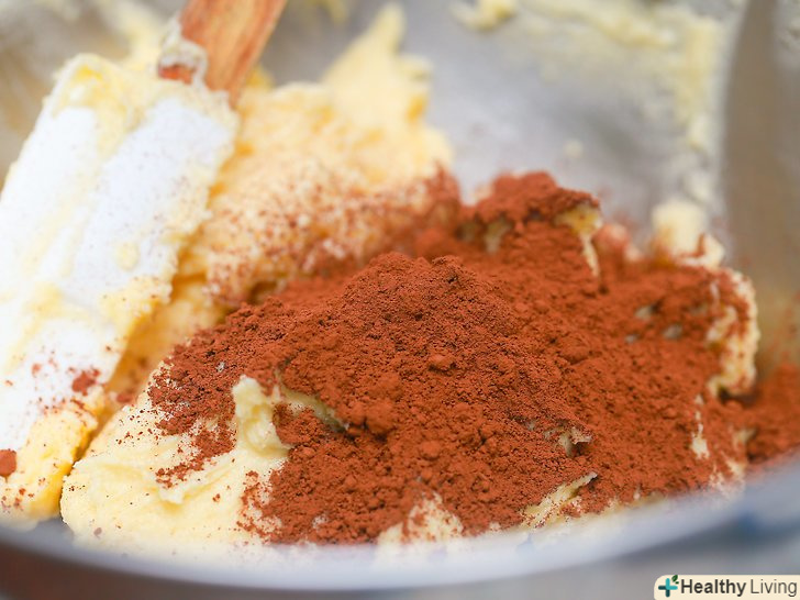 Додайте в миску какао-порошок, і збивайте тісто до тих пір, поки воно не стане повністю однорідним.