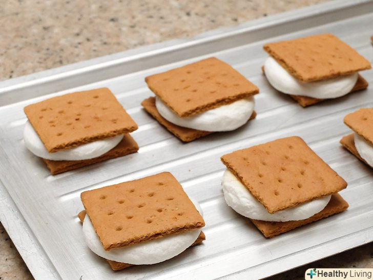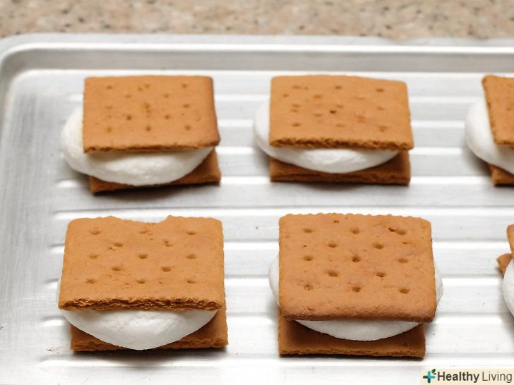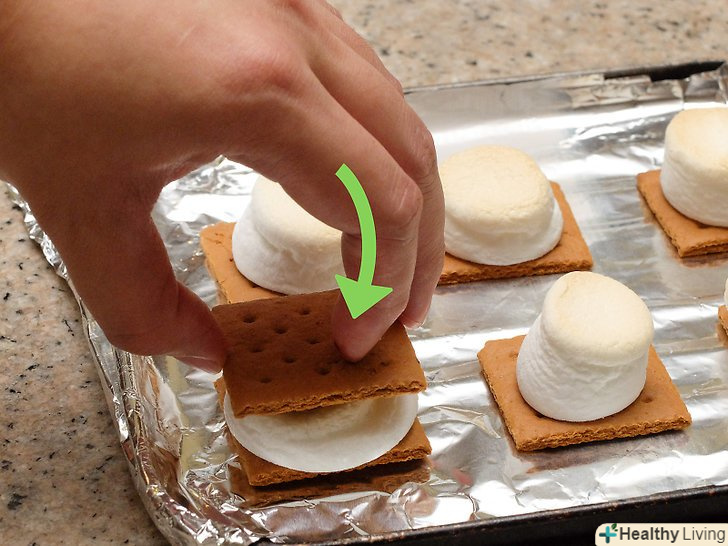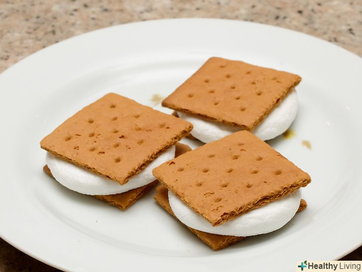 Накрийте кожен з них іншою половиною крекера Грема.обережно притисніть крекери разом, щоб вони краще пристали.[3]