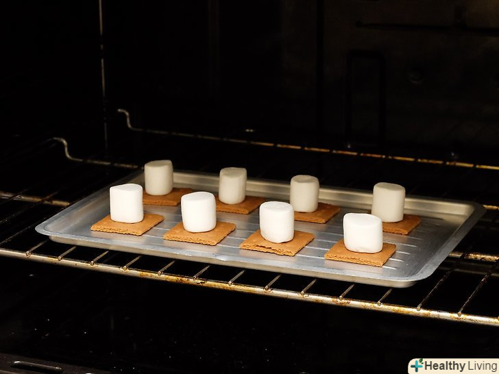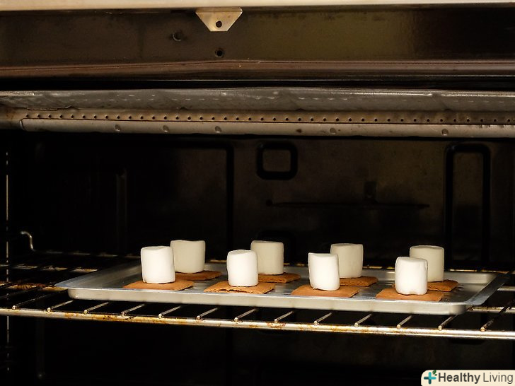 Запікайте смори.засуньте деко в грубку і закрийте дверцята. Запікайте смори, поки зефір не стане золотисто-коричневим. Це займе близько 4 хвилин.[10]